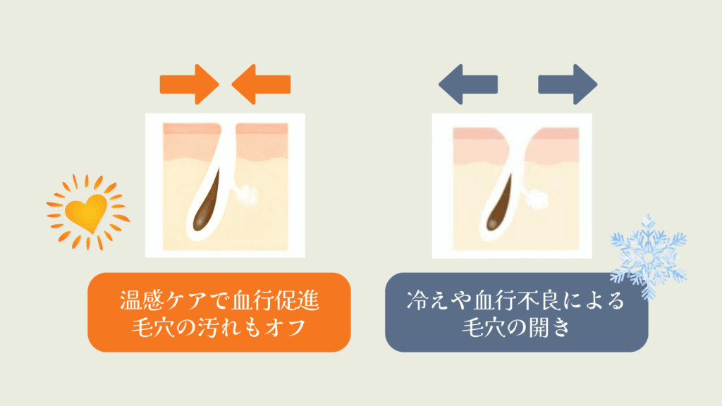 毛穴の開きや黒ずみは、実は“冷え”が引き金になっていることもあります。