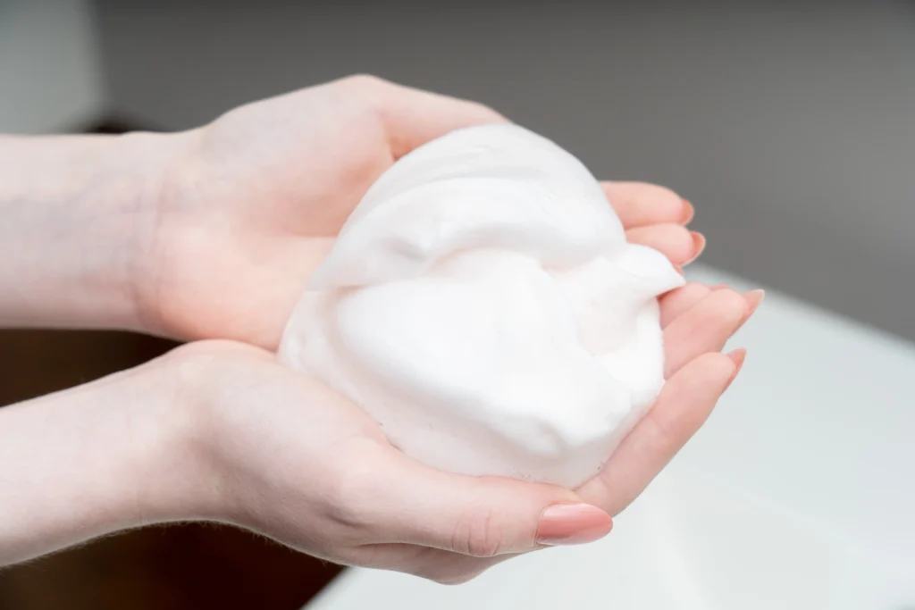 泡を立てずに洗うと指の摩擦が直に肌にダメージを与えます。